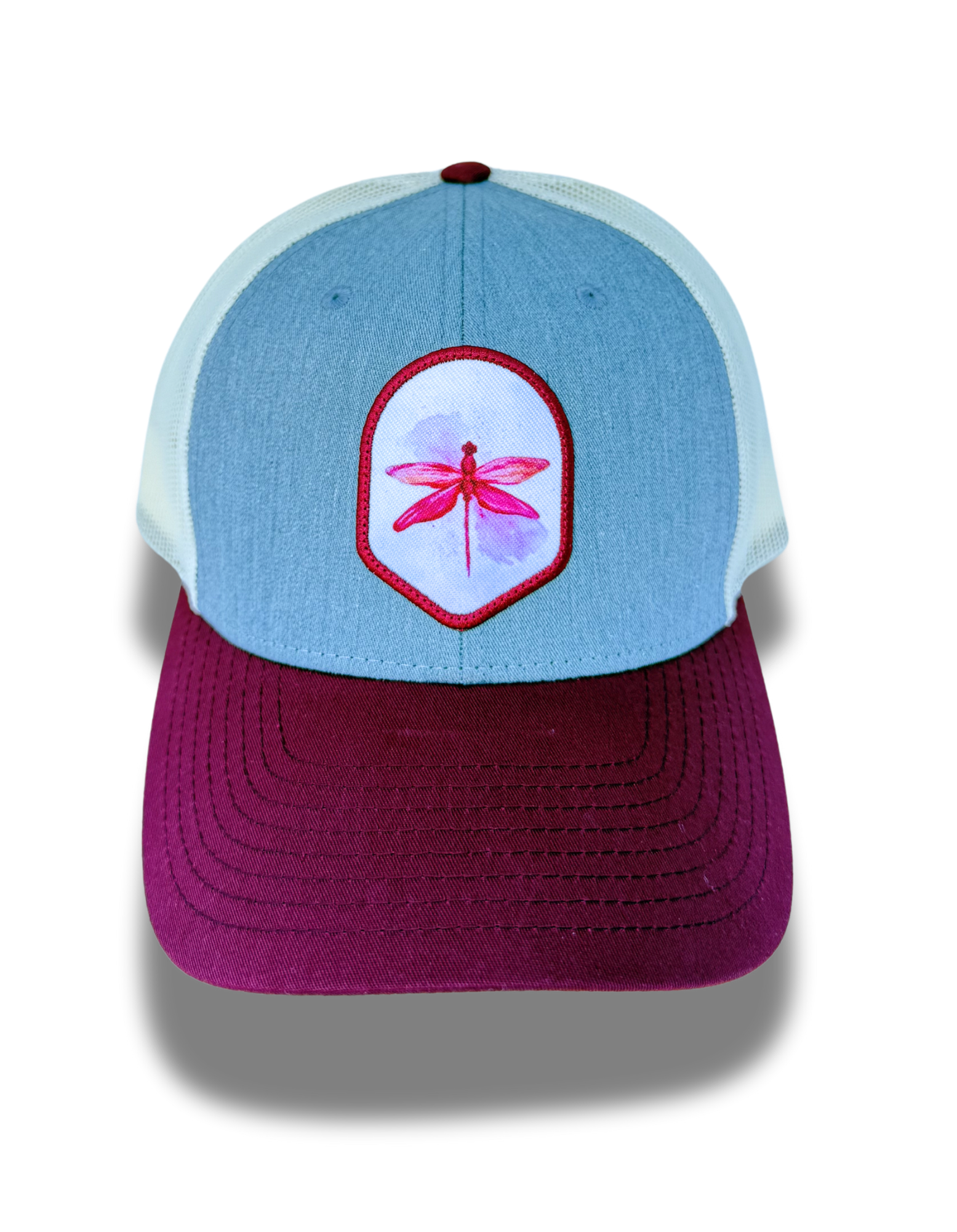 Dragonfly Dreams Trucker Hat – Celebrate nature with this tri-color snapback, featuring a print stitch patch of local artist artwork showcasing a delicate dragonfly. A nod to creativity and the beauty of the outdoors, this hat is perfect for art lovers and nature enthusiasts alike. Adjustable snapback closure. 🦋