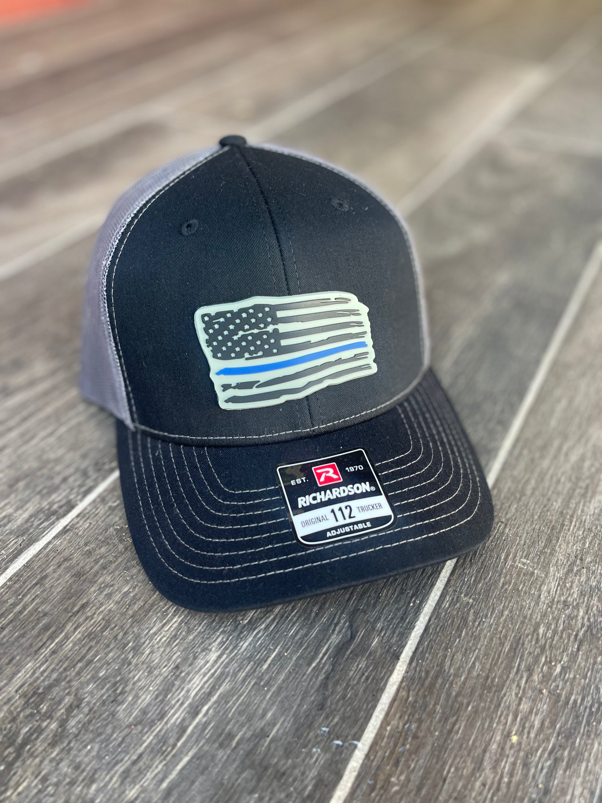 Get your exclusive hat featuring the Thin Blue Line American flag patch, proudly showing your support for the brave men and women in blue.